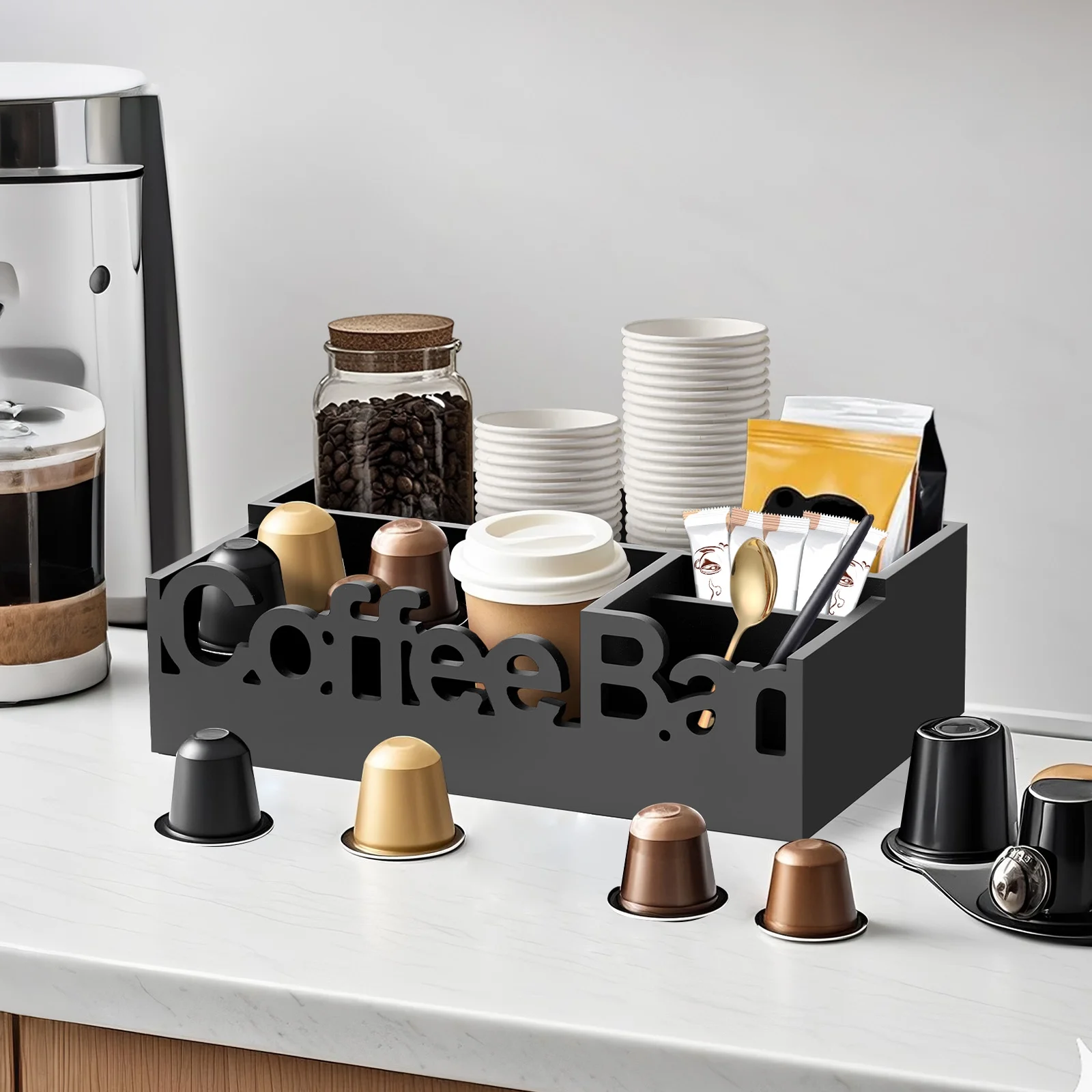• Sections organize remotes and small items. • Neutral finish suits most furniture. • Low sides allow easy access. • Protects tables from scratches. • Reduces visual clutter in living spaces.