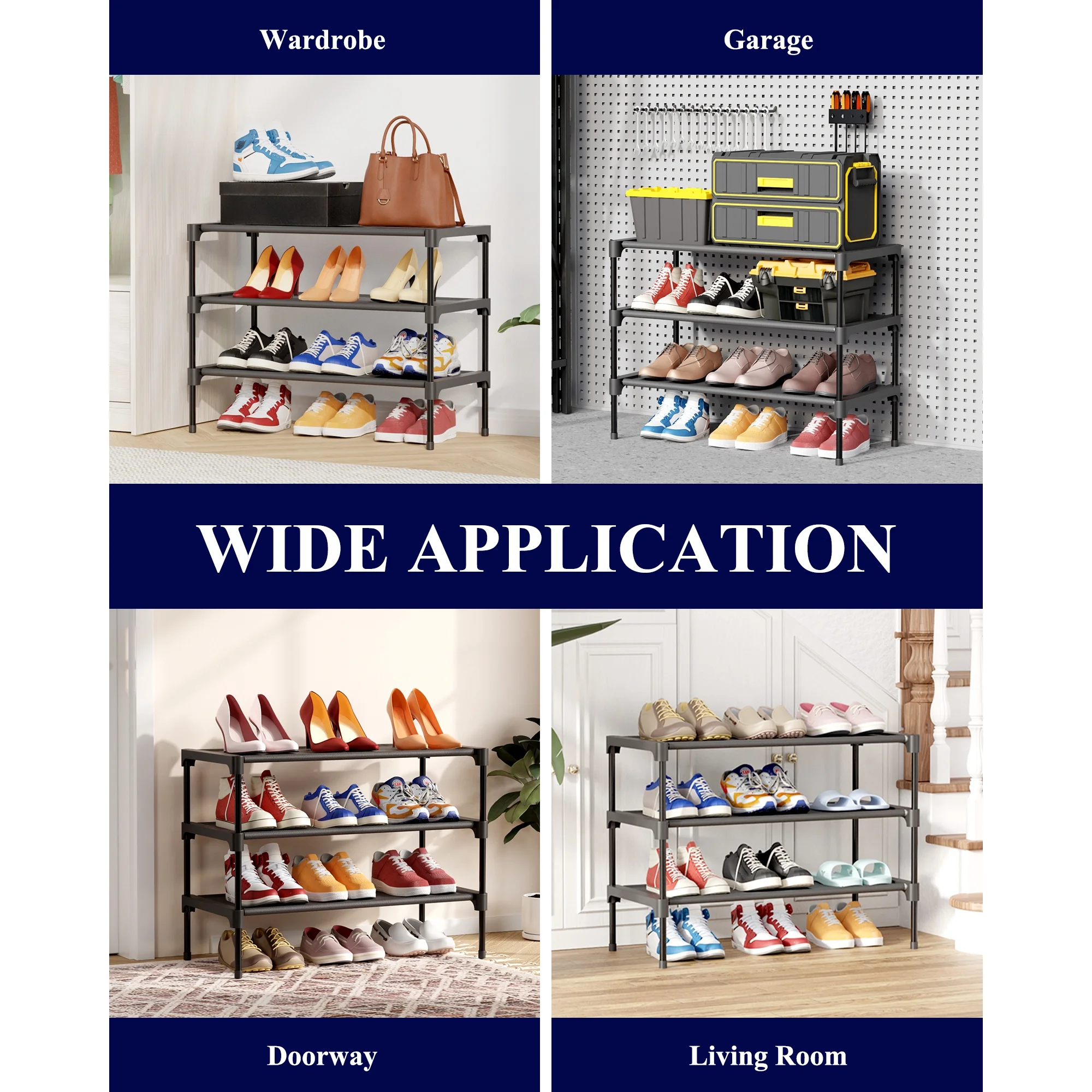 • Open shelves keep shoes visible. • Slim depth fits narrow entryways. • Holds several pairs of daily shoes. • Sturdy frame on floors. • Reduces entryway clutter.