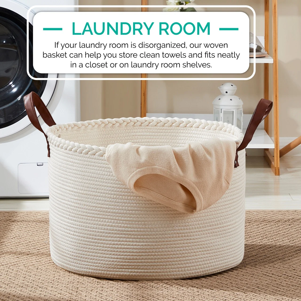 • Breathable fabric construction. • Handles for easy carrying. • Folds flat when not in use. • Removable liner is washable. • Neutral color suits most rooms.