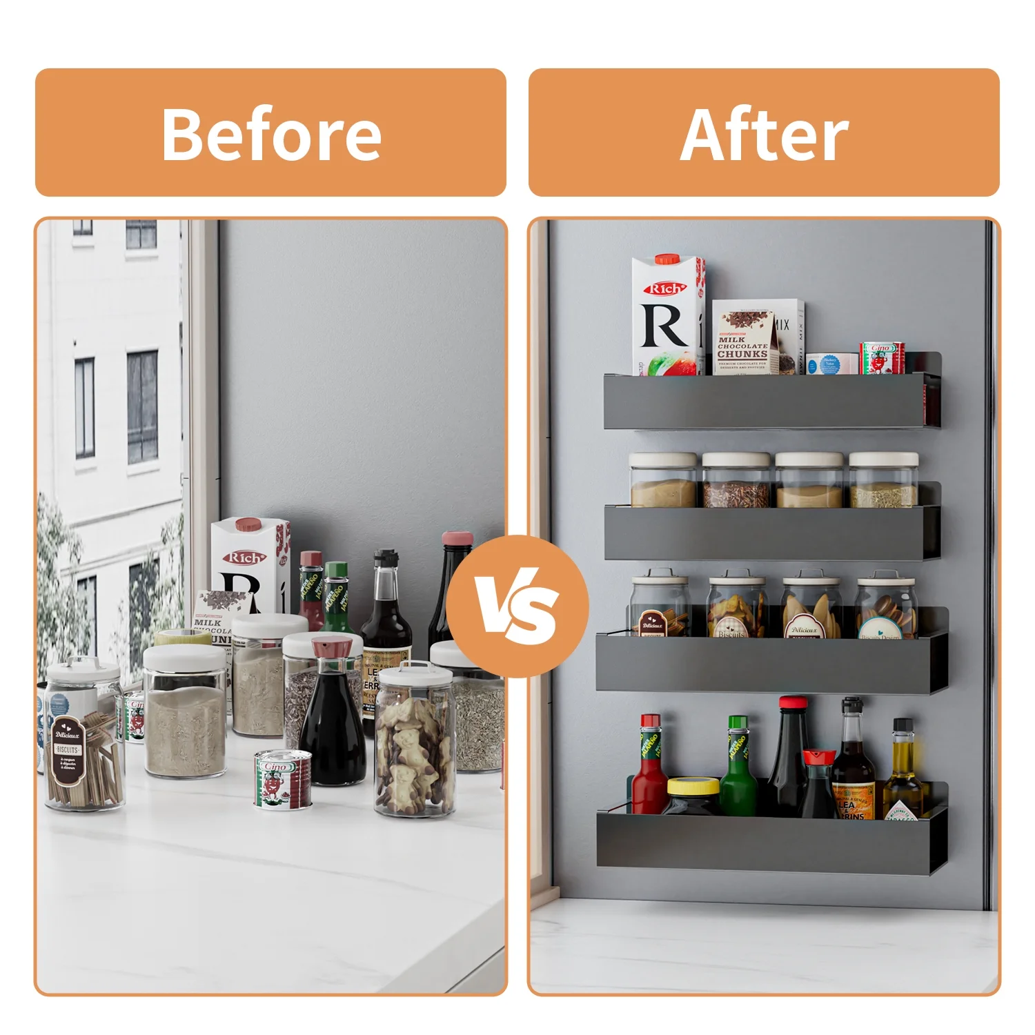 • Wall-mounted saves counter space. • Clear view of spice labels. • Sloped design for easy access. • Mounting hardware included. • Fits in smaller kitchens.