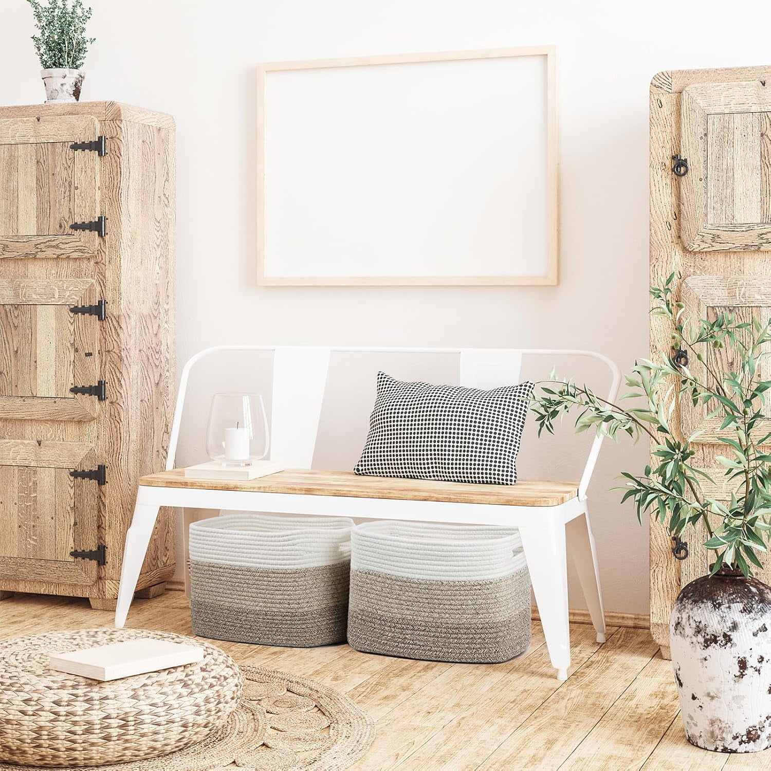 • Woven texture adds warmth. • Holds blankets or household items. • Flexible sides fit various spaces. • Handles for easy moving. • Reduces visual clutter.