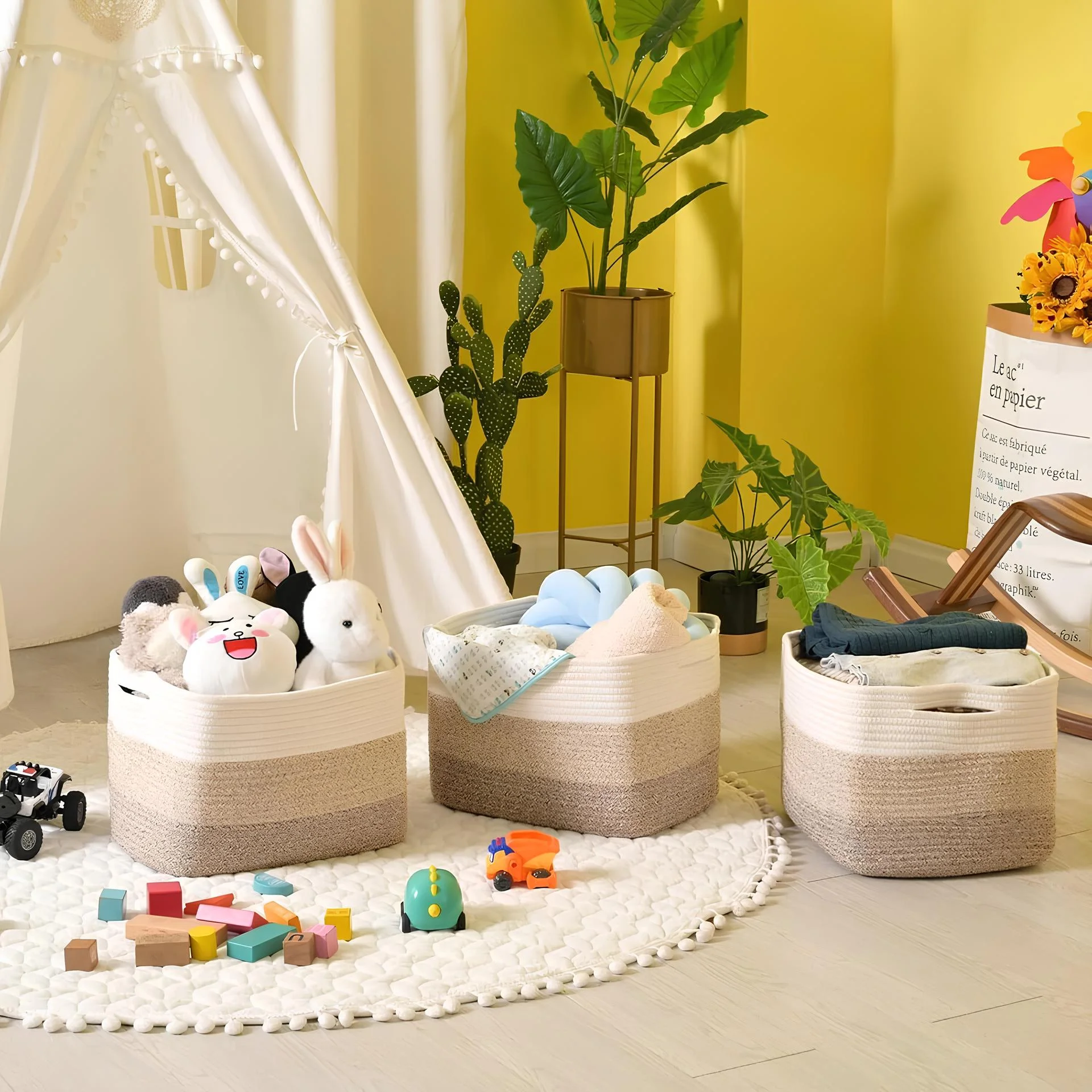 Material: Woven Cotton Rope or Synthetic Rattan, Reinforced Stitching, Integrated Carry Handles, Flexible Structured Sides, Durable Lightweight Construction